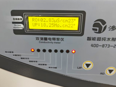 松山湖材料实验室在新材料研发、表征分析等前沿研究中,对超纯水水质有着极高要求。针对材料科学对低离子、低微粒含量的精细化需求,渗源科技设计的SYSL-A-II-60L超纯水机采用"四级预处理+反渗透+多通道纯化"集成工艺,产水电阻率达18.2MΩ·cm@25℃(在线监测),微生物≤1cfu/ml,微颗粒物≤1个/mL,完全满足化学分析实验、普通定性/定量分析、以及原子吸收、原子发射、紫外分光等实验的高品质用水需求。
