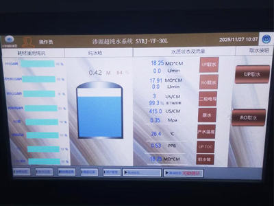 该系统配备100L水箱,采用全封闭循环设计。智能控制系统实时监测电阻率、TOC等关键参数,确保水质稳定可靠。渗源工程师团队根据医学实验室操作规范,优化了设备消毒方案,并对检测人员进行了专业培训。
