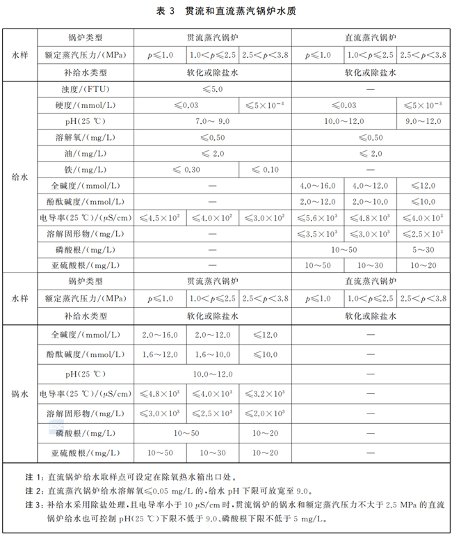 4.1 贯流和直流蒸汽锅炉给水和锅水水质应符合表3的规定。