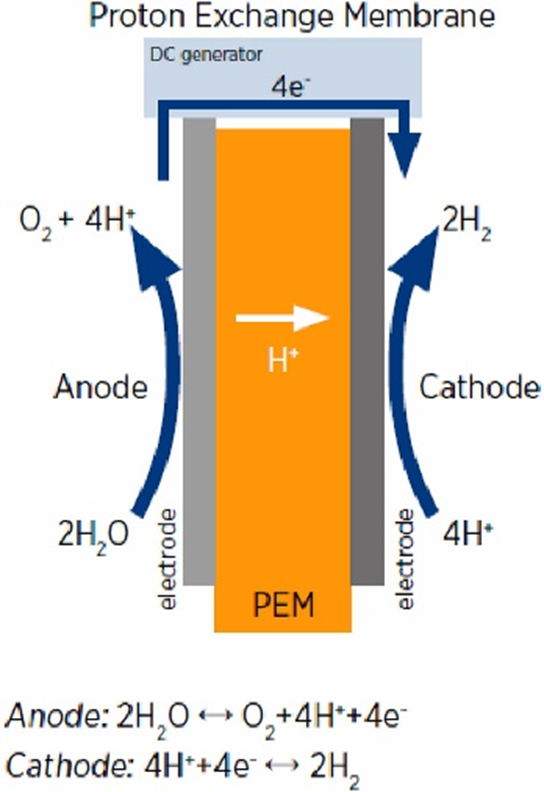- 工作机制:水分子在阳极分解为H⁺、O₂与电子,H⁺透过质子交换膜迁移至阴极,与电子结合生成H₂,阴极可承受高压(最高70MPa)。