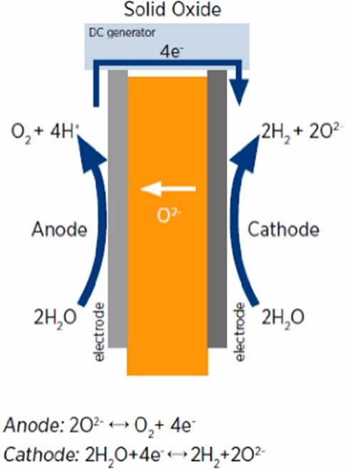 - 工作机制:水蒸气在阴极与电子结合生成H₂与O²⁻,O²⁻通过固体氧化物电解质迁移至阳极,氧化生成O₂,高温下反应动力学显著提升。